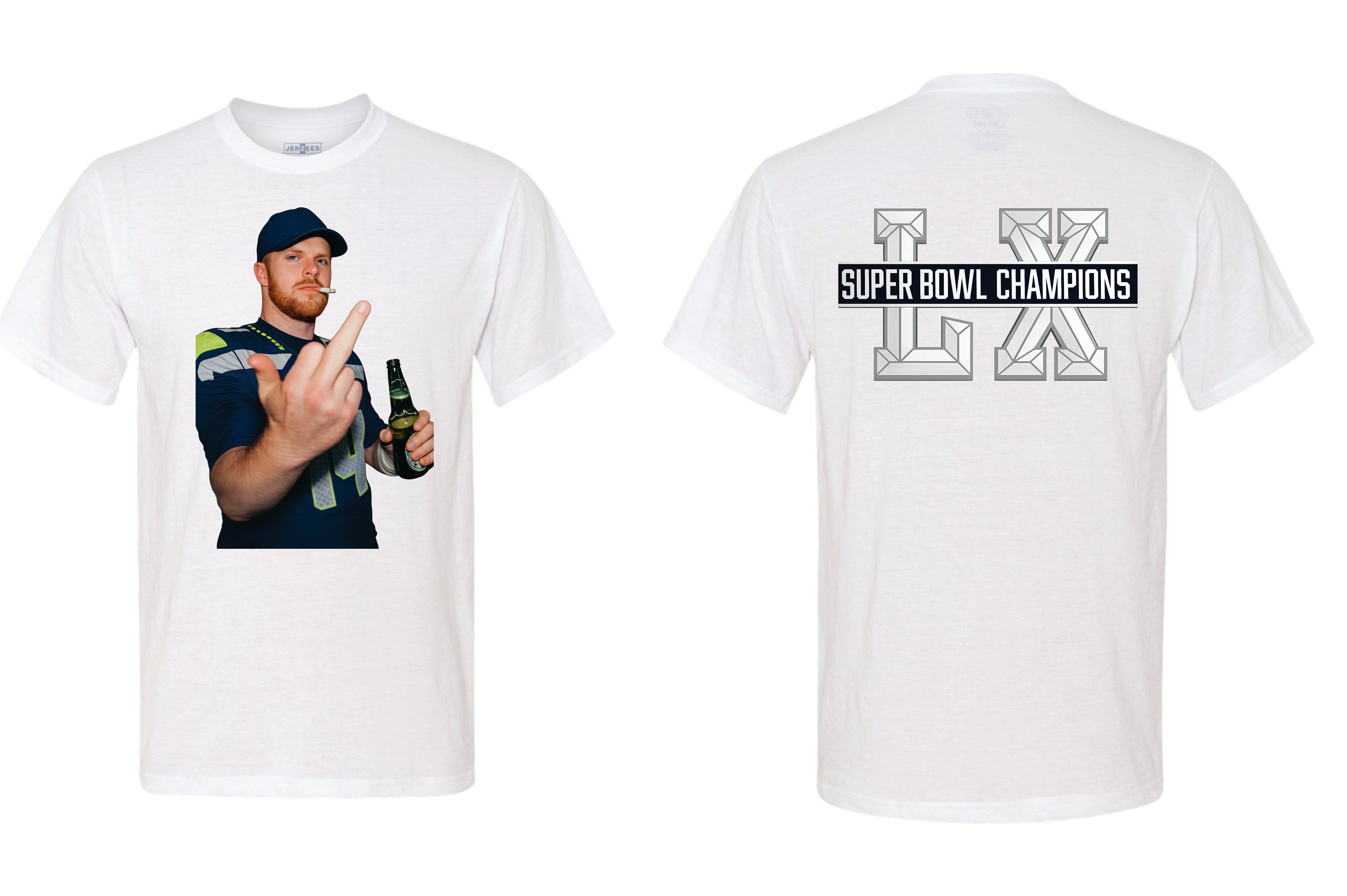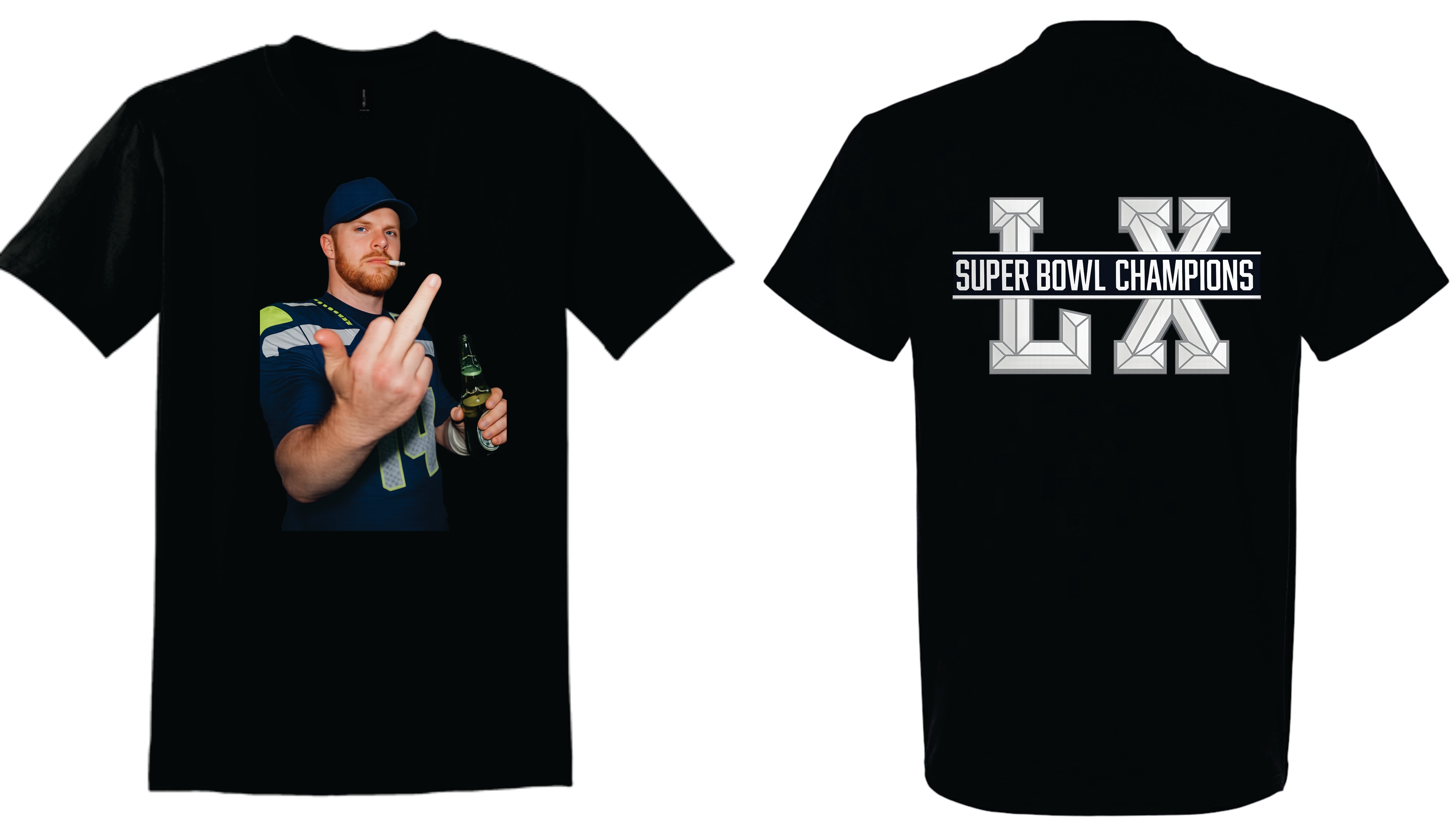Sam Darnold Beer Cigarette Middle Finger Shirt - Superbowl Parade - Seahawks Shirt