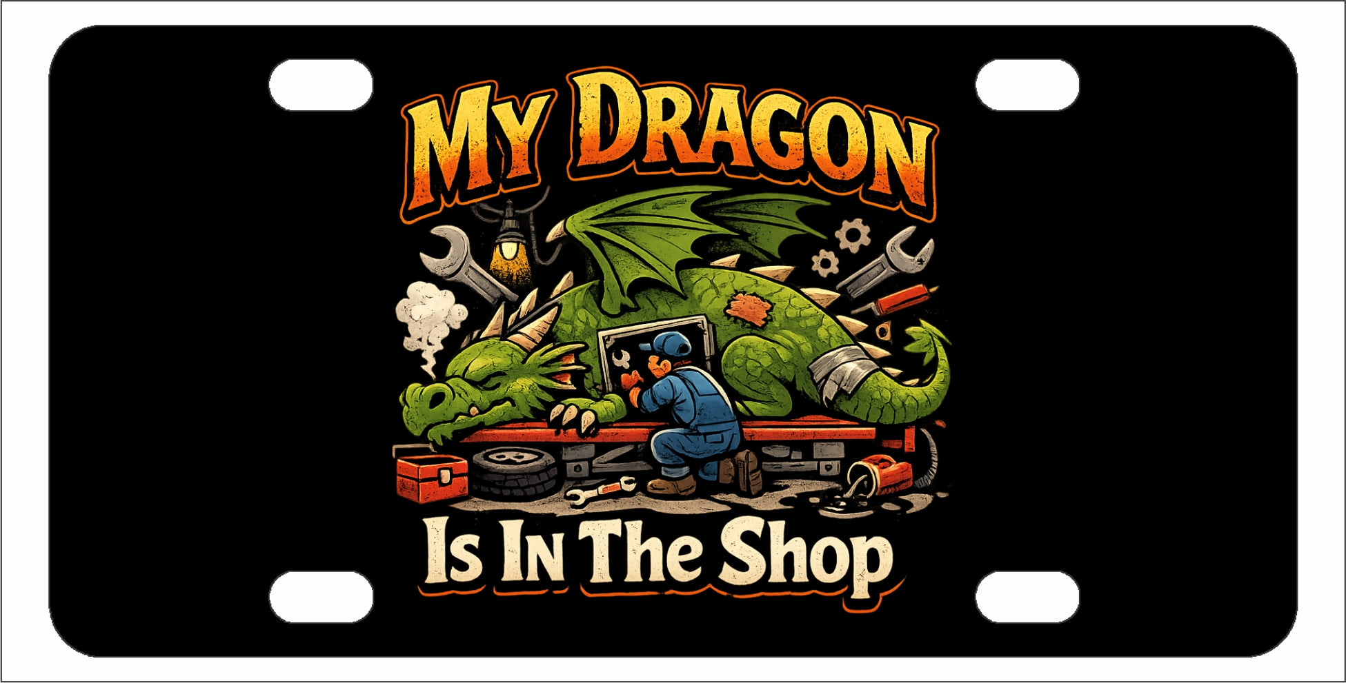 My Dragon is in the shop - Funny License Plate - Front Bumper